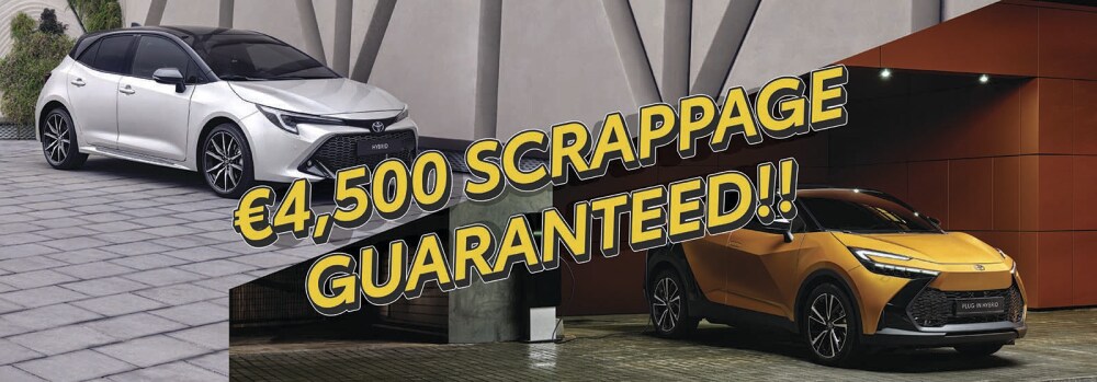 Is your car more rattle than roll? Drive it, push it, or drag it in to Tadg Riordan Motors, and we’ll still give you a guaranteed €4,500 scrappage on all new Corolla Hatchback and C-HR Hybrid models! Plus, three years servicing and low APR finance.